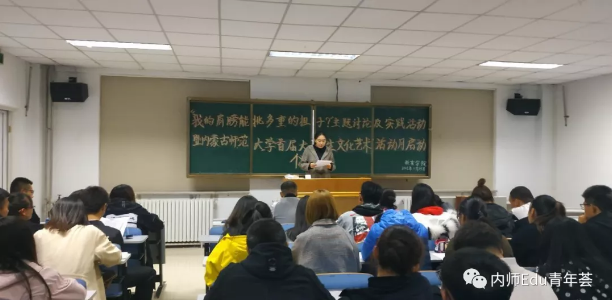 会上,孙悦老师首先由向同学们传达了学校相关的文件精神,对“我的肩膀——能挑多重的担子?”主题讨论及实践活动暨我校首届大学生文化艺术活动月的主题与方向进行解读,对活动的具体任务和要求进行了详细的说明,并就我院的具体活动安排进行了部署。
