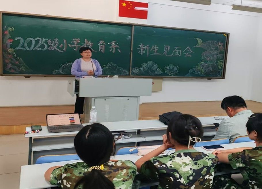 小学教育系主任常红梅、副系主任马红斐和两位年轻教师代表先后向新生表达欢迎,并就大学生活提供指导。常红梅老师代表全系师生向2025级新生的到来表示热烈欢迎,并简要介绍了小学教育专业的培养目标与课程结构,鼓励同学们尽快适应大学生活,找准节奏、融入集体。