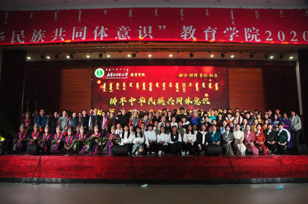 2020年12月3日晚七点,我院在内蒙古师范大学盛乐校区学生事务中心二楼演播大厅隆重举行“铸牢中华民族共同体意识”教育学院2020年迎新晚会。出席本次晚会的有校团委副书记包双成,教育学院党委书记铁木尔,院长米俊魁,党委副书记、副院长斯琴满都呼,副院长边琦,副院长赵荣辉,何士老师,组织员张克玉,我院教职工及2020级全体新生和老生代表。此次晚会通过抖音平台同步进行现场直播。