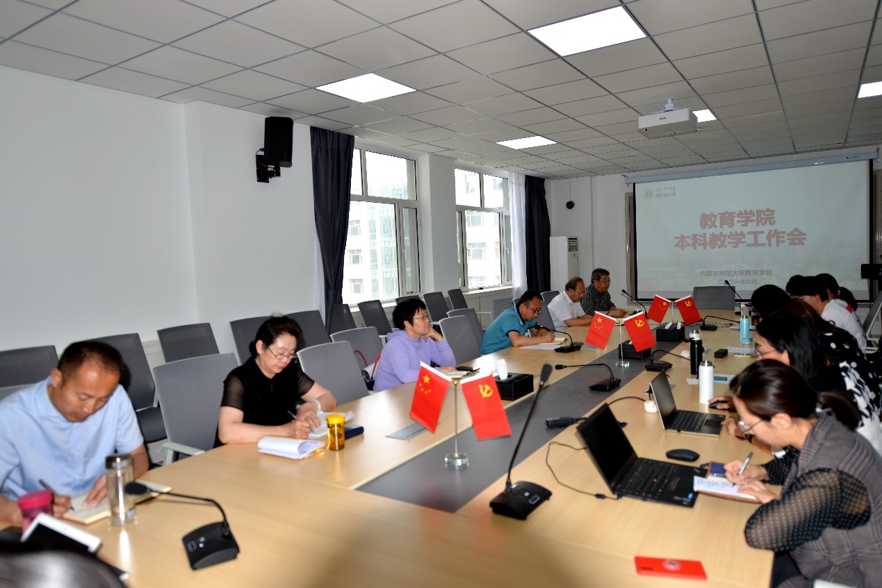 2021年6月11日上午09:00,教育学院在学院楼A406召开本科教学工作会议。会议由教育学院副院长边琦教授主持,院长米俊魁教授、党委副书记副院长斯琴满都呼、副院长赵荣辉教授、学院督导、各专业负责人、实践部负责人、公共课教研室负责人、教务办工作人员参加了本次会议。