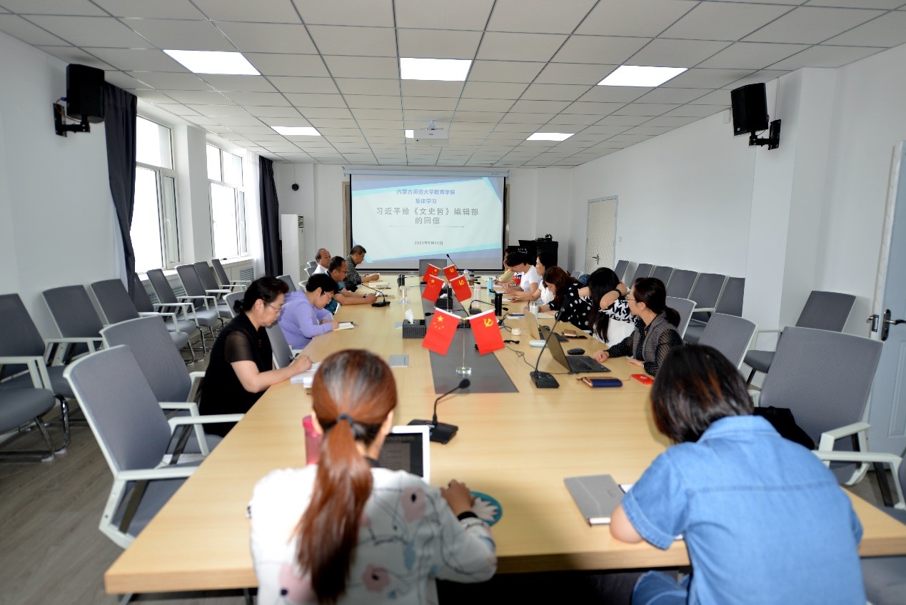 本次会议分两个阶段:第一阶段主要深入学习贯彻习近平总书记给《文史哲》编辑部的回信精神,边琦教授带领老师们认真学习了习近平总书记的重要指示精神。通过学习,鞭策老师们在未来的工作和学习中将更加坚守初心,在党的领导下,走中国特色社会主义办学道路,坚持立德树人的根本任务,创造高水平研究成果,努力为实现中华民族伟大复兴作出新的更大贡献。