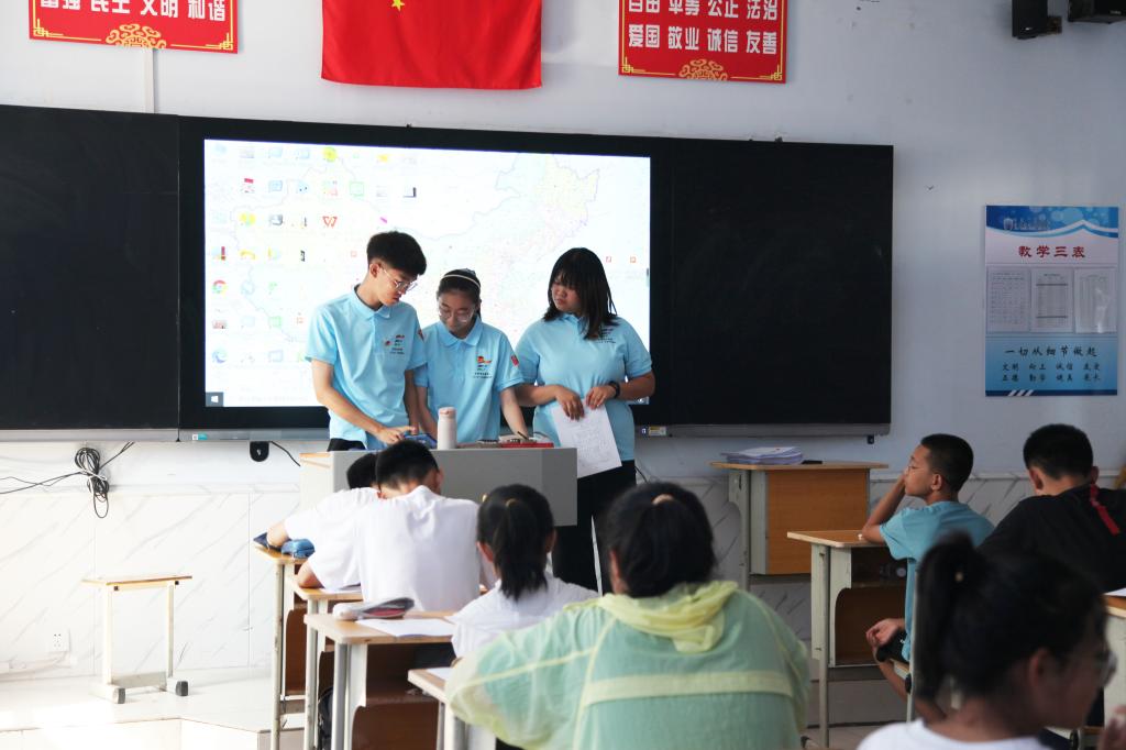 “三下乡”志愿者服务队队员们看着学生们渴望知识的脸庞,心中不禁感叹,相信通过今天以及接下来的学习,孩子们会有所学、有所得、有所长,以知识作为媒介,尽情绽放学生独有的青春魅力。